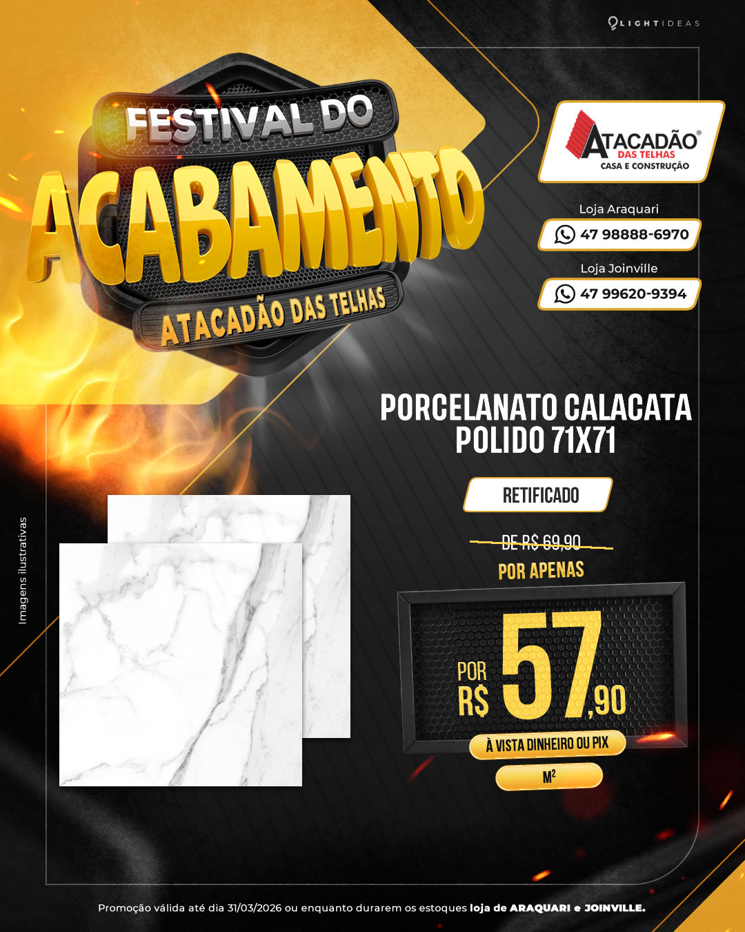PORCELANATO CALACATA POLIDO 71X71 quantidade