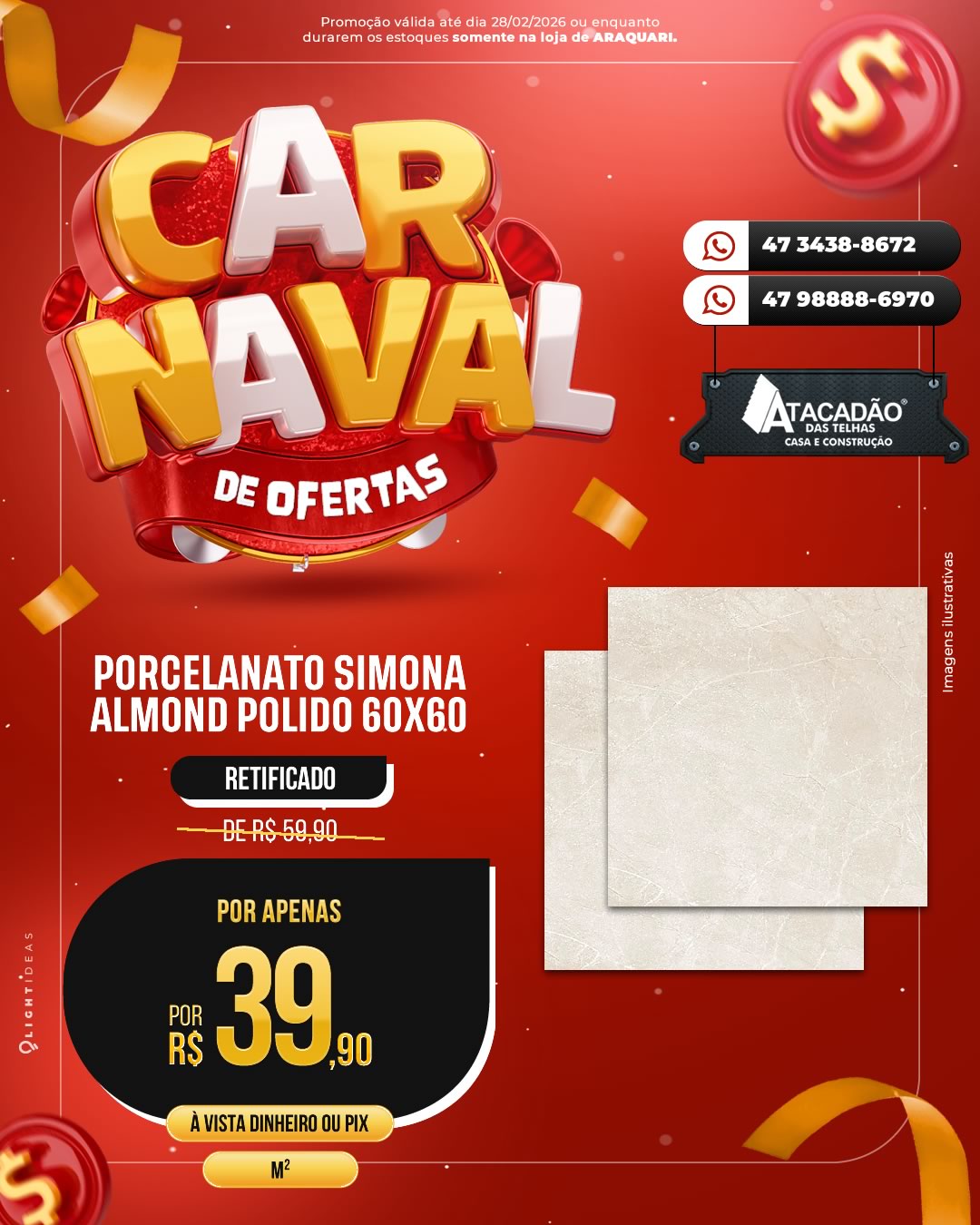 PORCELANATO SIMONA ALMOND POLIDO 60X60 quantidade
