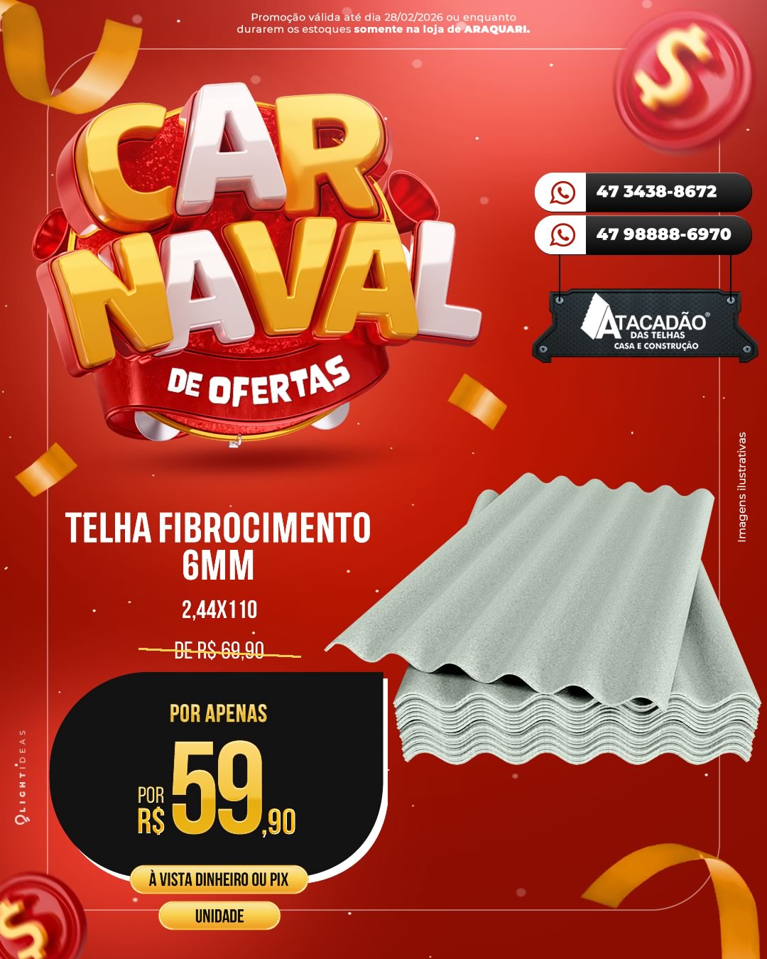 TELHA FIBROCIMENTO 6MM quantidade
